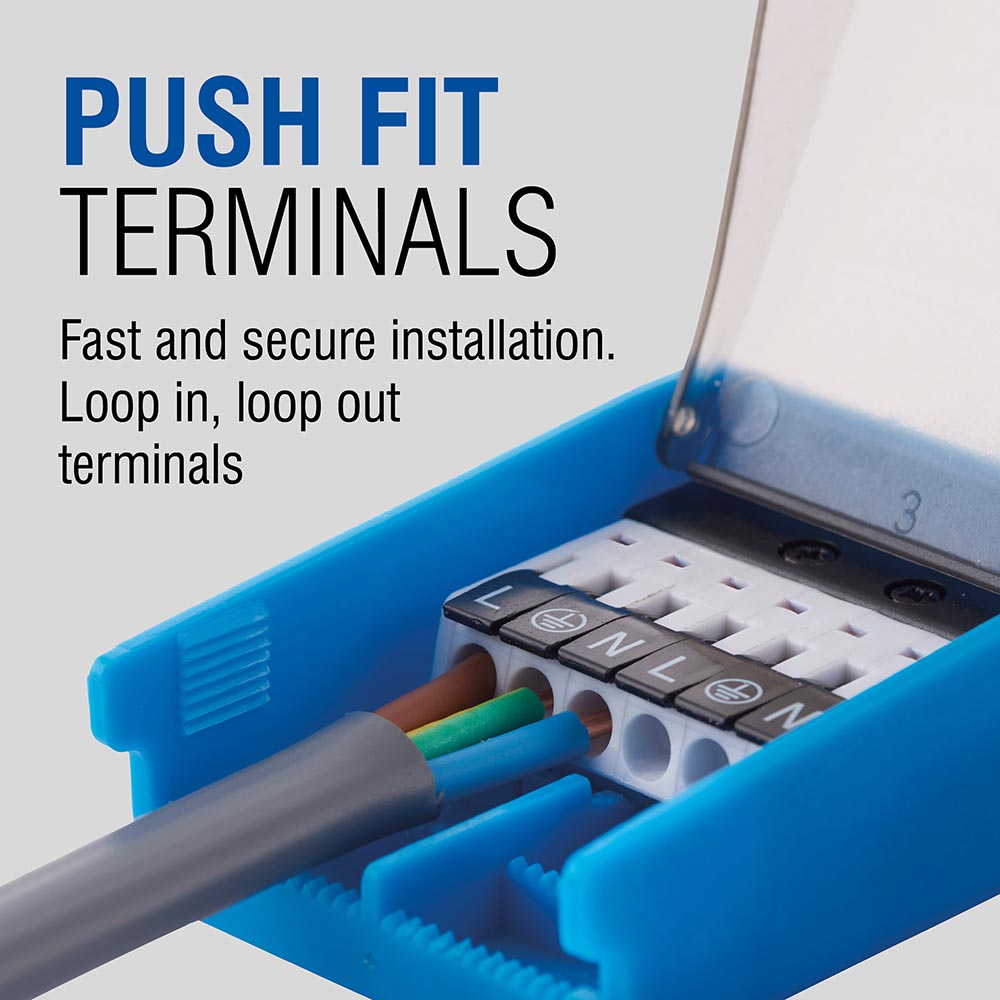 The popular ShieldPRO fitting from Saxby has been upgraded! This fitting comes with a 3-way Plug and Play connector which allows users to loop in and out. The connector has a simple 4-way CCT switch allowing users to choose between 2700K, 3000K, 4000K or 6000K and a 3-way Watt switch allowing users to choose between 4W, 6W or 8W. Other features include: the option to be covered with insulation, fits into shallow ceiling voids, IP65-rated, and fully fire-rated for 30, 60 and 90-minute ceilings.