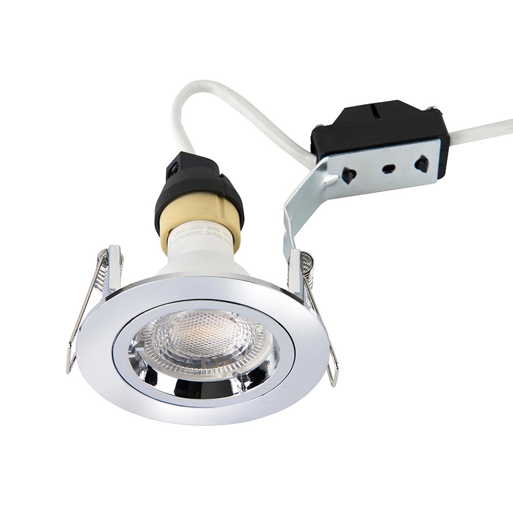 A mains voltage fixed downlight, finished in chrome. Idea for general, accent and display lighting. Other options available in the range.