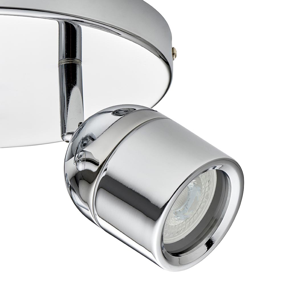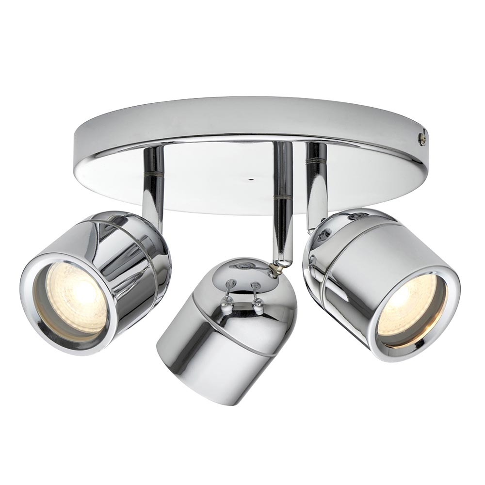The stunning Knight triple ceiling spotlight combines a high quality polished chrome finish, sleek design and functional form. With its fully adjustable heads, this item offers a flexible solution to your lighting requirements. Also available in a single light and 3 light bar option.