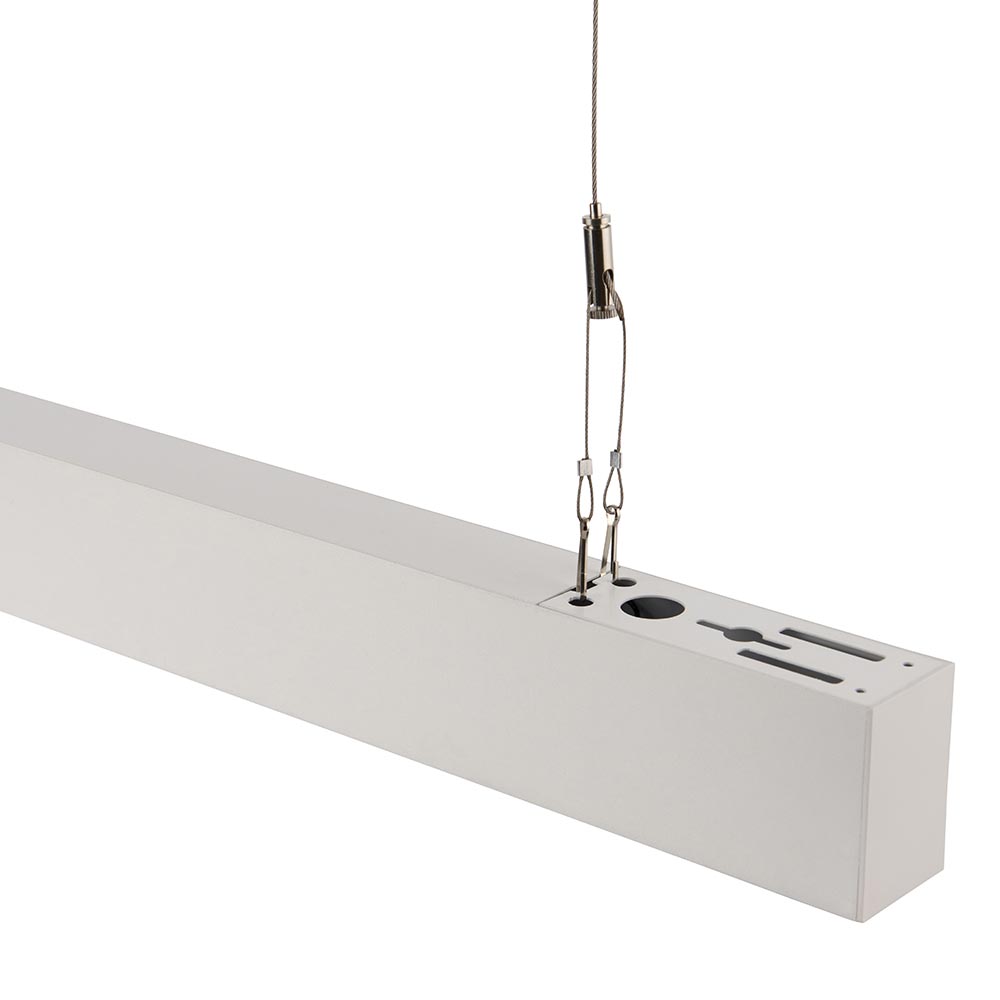 Linus offers the flexibility to suit any modern commercial environment and designed for both suspended and surface-mounted installations. Available in black or white, it features a Dual-Wattage switch (30W / 50W) and CCT switch (3000K / 4000K / 6000K), giving you complete control over both brightness and colour temperature. With an output of upto 5000 lumens at 100lm/W, Linus delivers bright, efficient illumination. It comes with a 2m suspension kit for precise positioning and can be easily linked using connectors in the range perfect for creating longer runs in offices, retail spaces, and contemporary work environments.