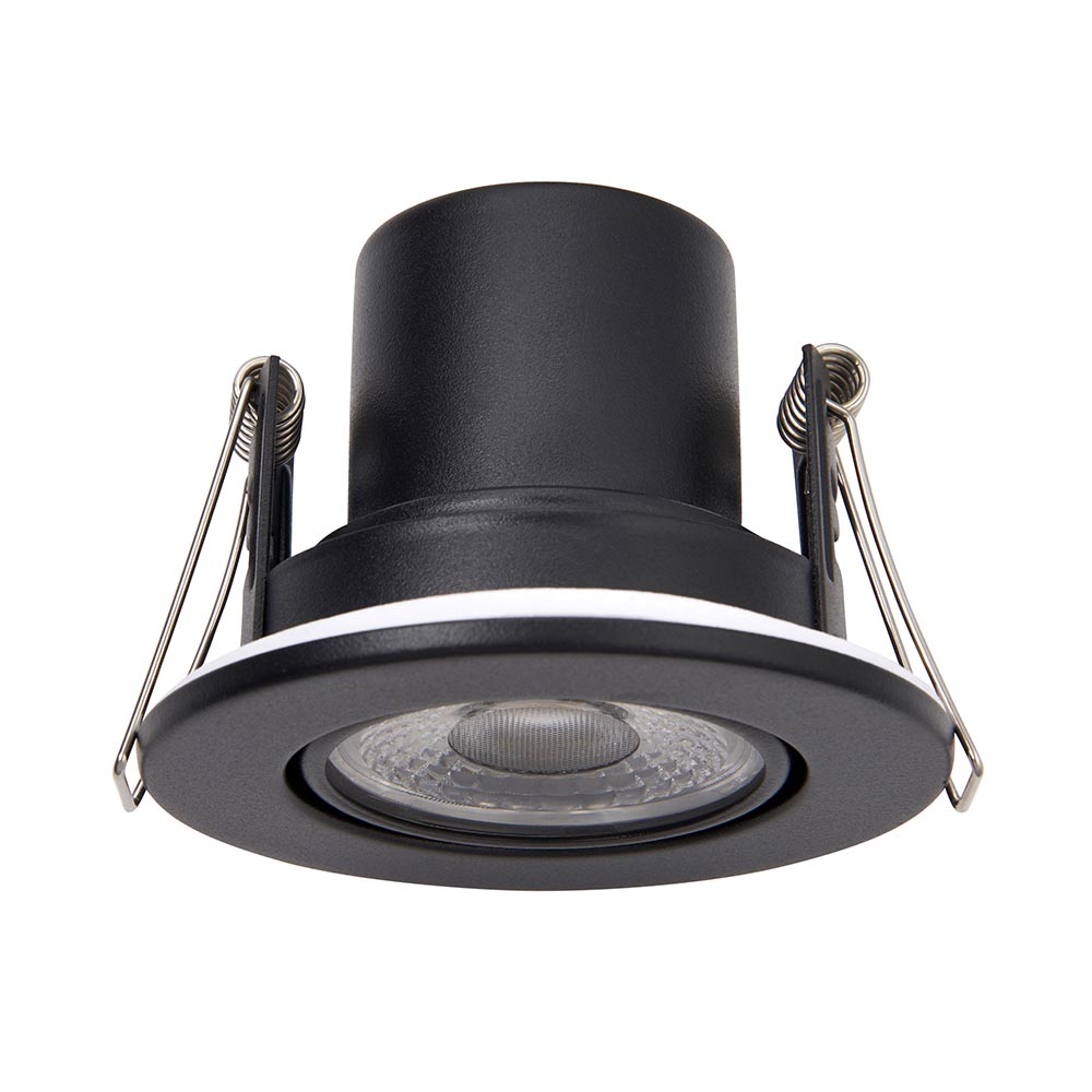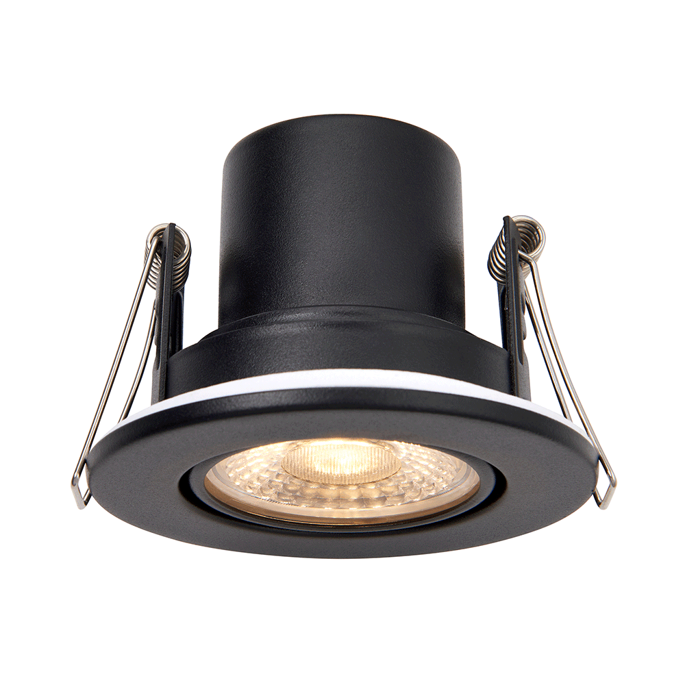 Ideal for domestic use, the ShieldECO 500 Tilt range has all the features required of an everyday downlight; fire rated, and dimmable. Tool-less and quick to install due to the 4 way push fit screwless terminal block. The 5W LED SMD module produces 500 lumens and incorporates a 60° lens. Slim profile with matt black finish.