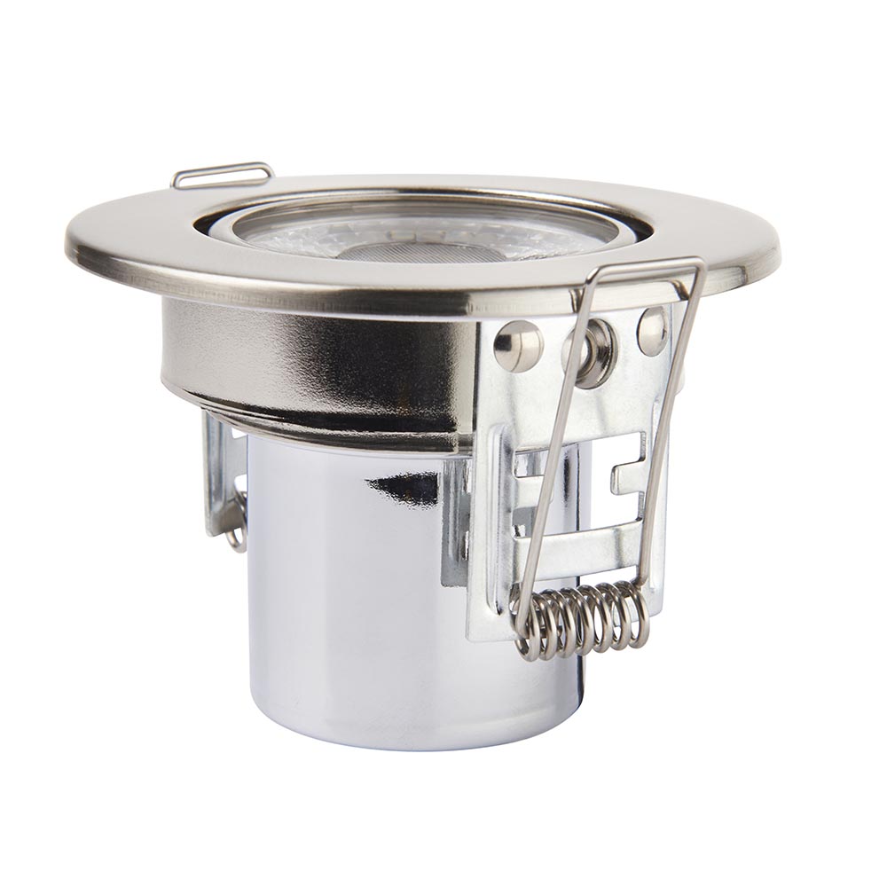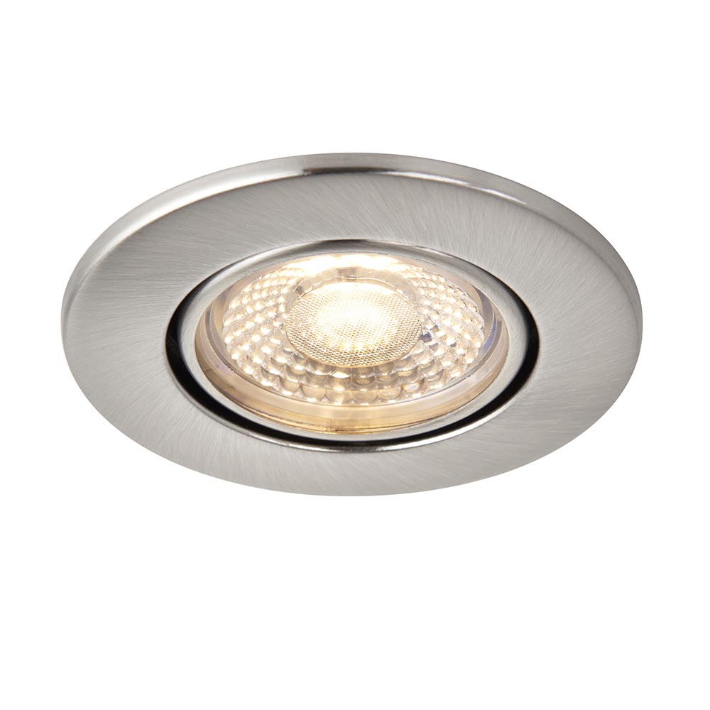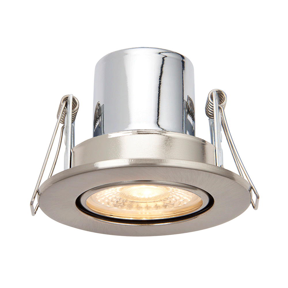 Ideal for domestic use, the ShieldECO 500 Tilt range has all the features required of an everyday downlight; fire rated, and dimmable. Tool-less and quick to install due to the 4 way push fit screwless terminal block. The 5W LED SMD module produces 500 lumens and incorporates a 60° lens. Slim profile with satin nickel finish.