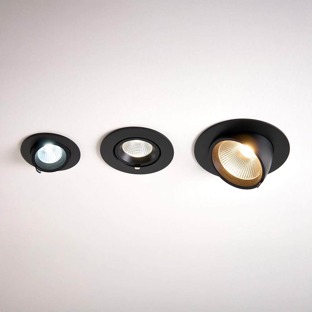 The Axial CCT range consists of high performance downlights, ideal for commercial spaces, but particularly retail as their light projection is changeable. Each fitting is supplied with a driver. Range contains a variety of sizes and shapes. Available in matt white and matt black and three wattage options 10.5W, 15W & 30w