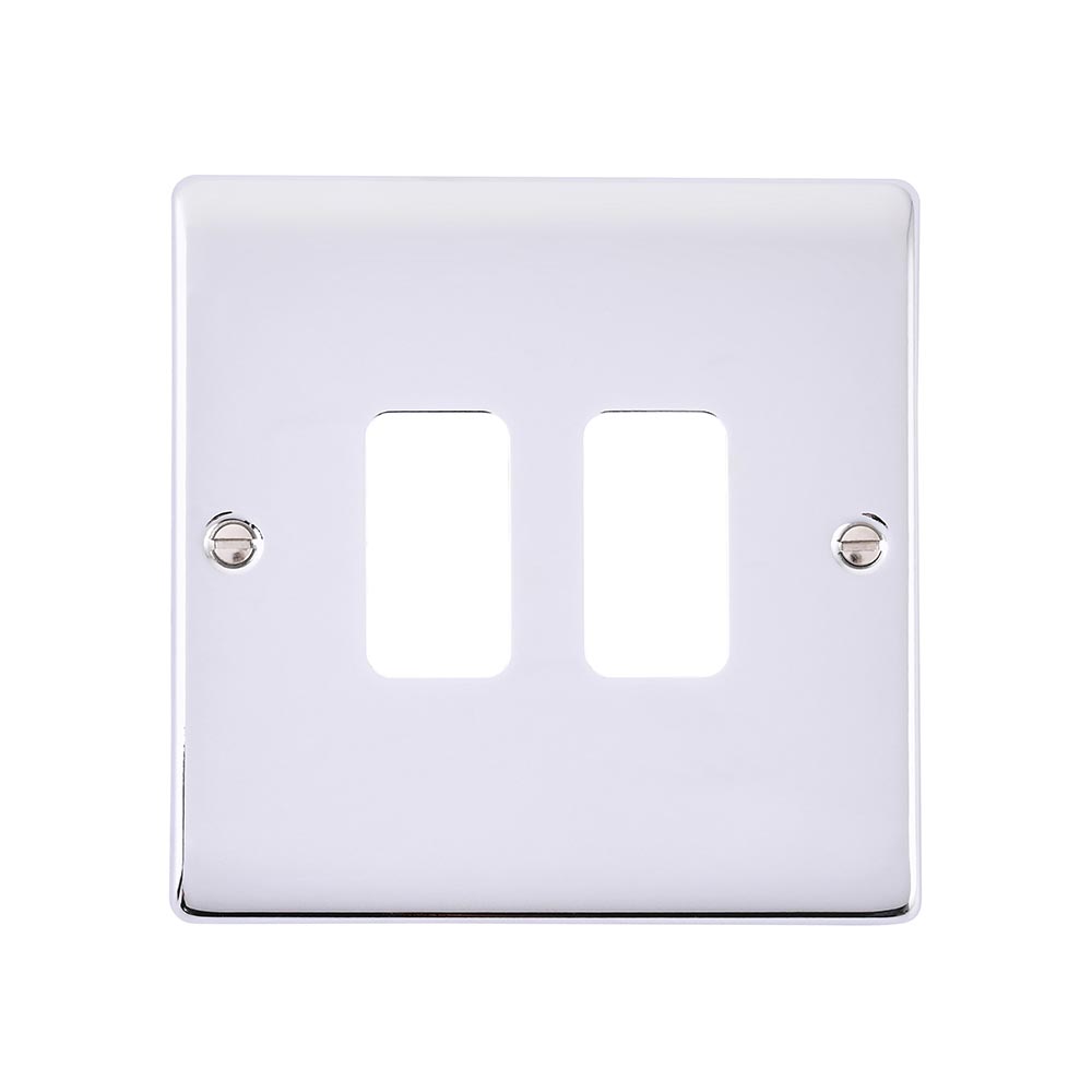 Raised Screwed 2G Grid Front Plate - Polished Chrome