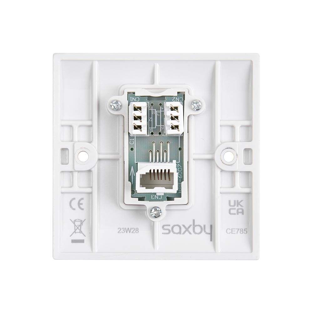 Used for the secondary telephoneSupplied with fixing screws & white screw covers for sleek appearanceShuttered socketThis has been manufactured using high grade thermoset Urea which effectively inhibits the growth of infectious diseases, including MRSA, E-Coli, Salmonella and Klebsiella Pneumonia bacteriaWe recommend a minimum mounting box depth of 25mmCertified to BS 5733