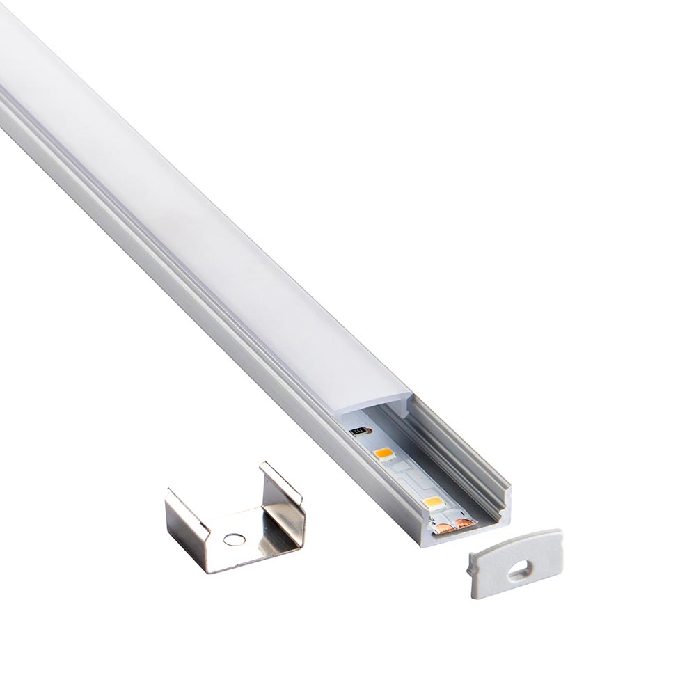 The RigelSLIM Surface is a slimline aluminium extrusion which benefits from having a push on polycarbonate diffuser. This profile can be easily mounted on any flat surface using the brackets included with the profile. The extrusion effectively conceals the LED tape and gives a softer lighting effect and adds an additional layer of protection to your LED Tape. Also available in singles.