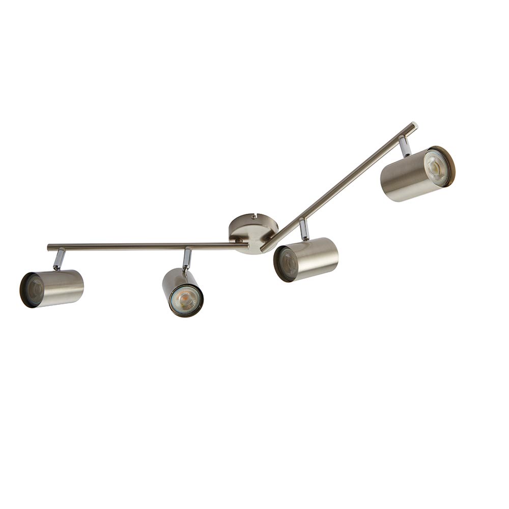 The Arezzo two bar has four adjustable spotlights and is compatible with GU10 LED lamps. Suitable for commercial or domestic use, the two bars are fully adjustable to concentrate light where it's needed most. Finished in satin chrome effect with chrome detail, matching items are available.