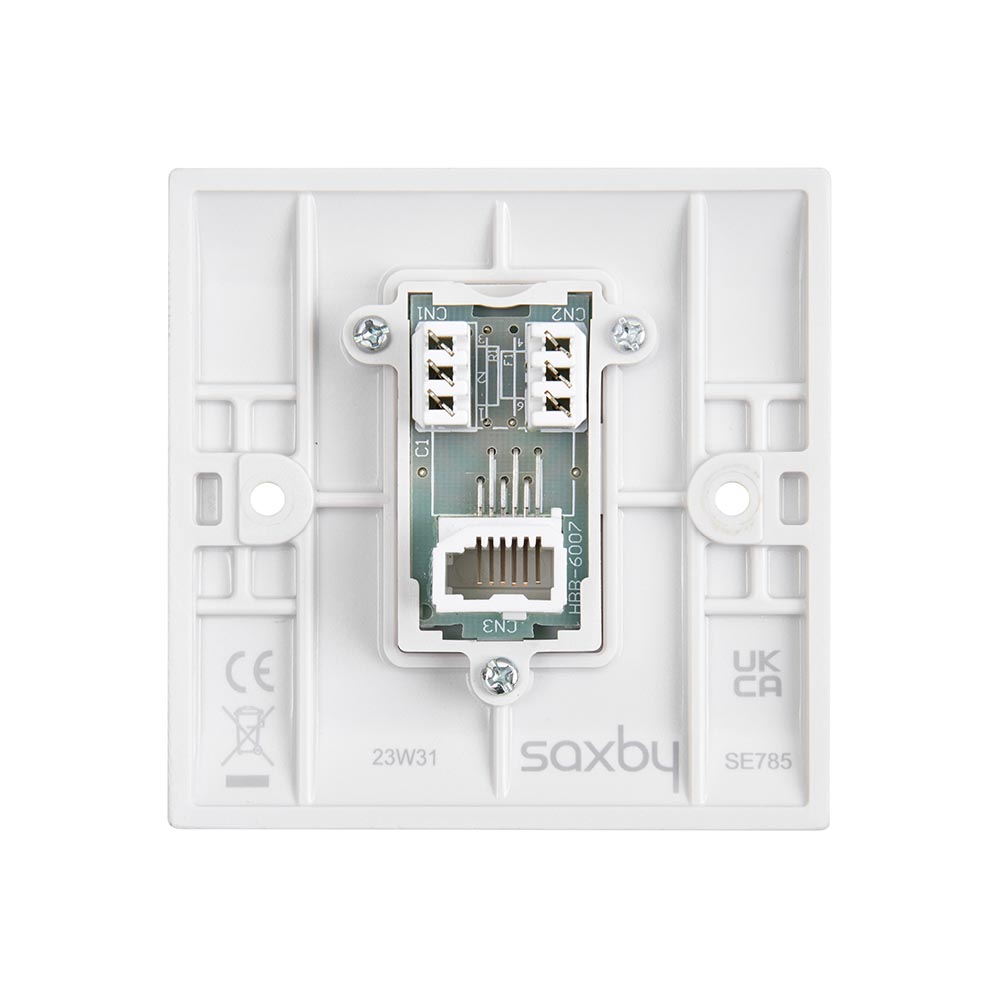 Used for the secondary telephoneSupplied with fixing screws & white screw covers for sleek appearanceShuttered socketThis has been manufactured using high grade thermoset Urea which effectively inhibits the growth of infectious diseases, including MRSA, E-Coli, Salmonella and Klebsiella Pneumonia bacteriaWe recommend a minimum mounting box depth of 25mmCertified to BS 5733